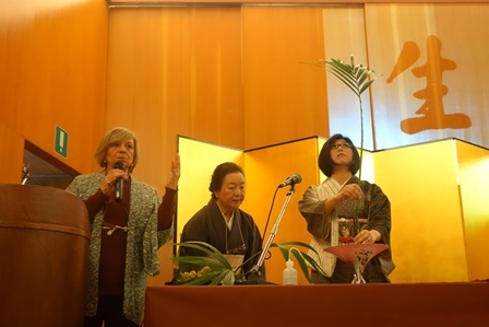 Ad aprire l’evento, organizzato in occasione del finissage della mostra “KIMONO ovvero l’arte di indossar storie” conclusasi il giorno successivo, il saluto del Min. Cons. Hitomi Sato, seguito dall’introduzione alla “via dei fiori” (kadō) e alla sua storia a cura di Silvana Mattei (Scuola Ohara), e dalla presentazione e dimostrazione delle tre scuole presenti: Ikenobo, a cura di Mayumi Mezaki e Yoko Kurata, Ohara, a cura di Silvana Mattei, Sogetsu, a cura di Lucio Farinelli (attuale Presidente dell’Ikebana International Rome prospective Chapter) e Luca Ramacciotti.