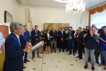 Al ricevimento hanno partecipato circa 100 persone, tra cui il Sottosegretario di Stato alla Presidenza del Consiglio dei Ministri, On. Giancarlo Giorgetti, vari rappresentanti del governo italiano, a cominciare dai membri della Sezione Bilaterale di Amicizia Italia-Giappone dell’Unione Interparlamentare, appena formatasi, atleti e allenatore della nazionale italiana di rugby, in procinto di partecipare ai mondiali, nonché atleti olimpici che speriamo di poter vedere ai Giochi di Tokyo, e rappresentanti della stampa. Inoltre, le sale della Residenza sono state animate da video promozionali delle città che ospiteranno i grandi eventi sportivi in programma, esposizioni di poster e mascotte ufficiali, distribuzione di materiale turistico sul Giappone.
