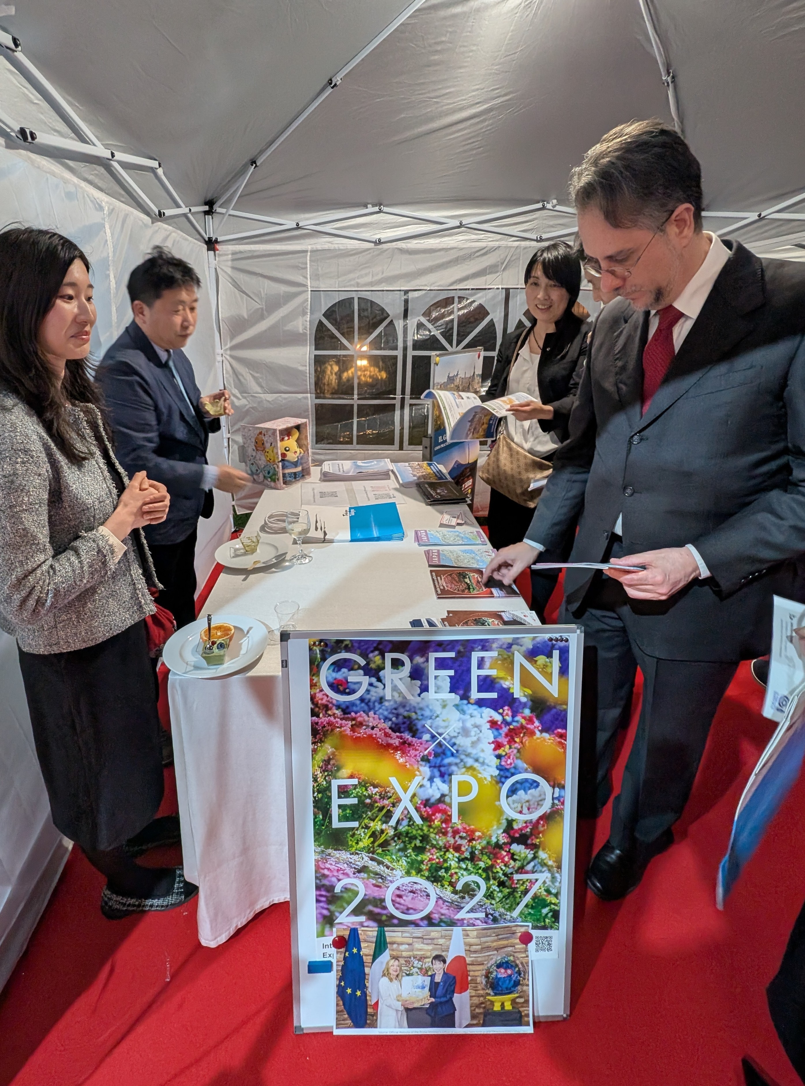 Al ricevimento hanno partecipato circa 290 ospiti, tra cui funzionari del governo italiano, membri del parlamento, rappresentanti del corpo diplomatico e membri della comunità giapponese. La cerimonia è iniziata con gli inni nazionali del Giappone e dell'Italia, seguiti dai discorsi dell'ambasciatore Ono e dell'onorevole Eugenio Zoffili, presidente dell'Associazione parlamentare di amicizia Italia-Giappone.